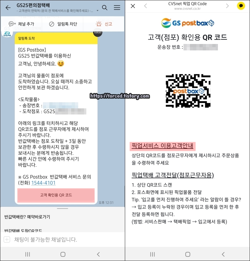 3. GS25편의점택배 알림톡에 있는 '고객 확인용 QR 코드' 보여주기