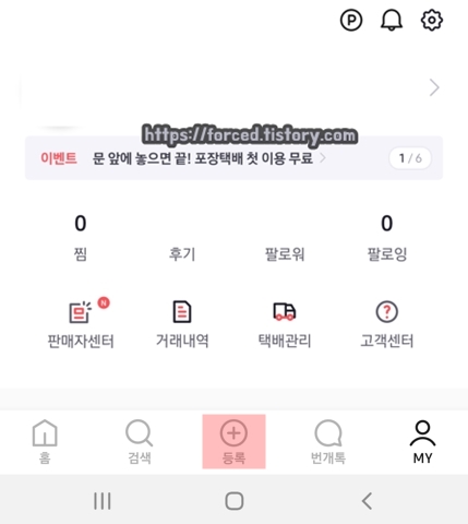 로그인 후, 하단에 보이는 '등록'을 눌러줍니다.