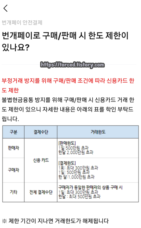 <번개페이 구매 및 판매 한도>