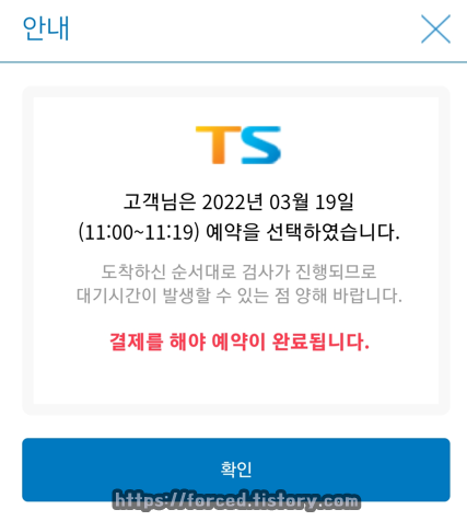 내가 선택한 정기 검사 날짜와 시간을 확인해줍니다.