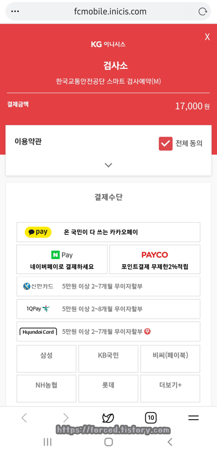 참고로 저는 '신용카드 간편결제'로 납부했습니다. 신용카드 간편결제를 선택하면 카카오페이, 네이버페이, 페이코, 카드사 앱카드로 편하게 납부할 수 있습니다.