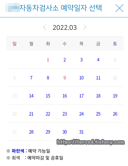 ※ 자동차 정기 검사는 일요일과 공휴일을 제외한 평일과 토요일에만 가능합니다.