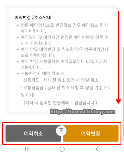 ※ 방문 당일 예약 변경 및 취소는 해당 검사소에 직접 문의해야 합니다.