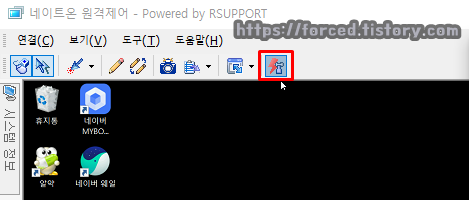 네이트온 원격제어 연결이 완료된 모습입니다. 이 화면을 통해 상대방의 PC를 내 마음대로 제어할 수 있습니다. (원격제어 시 각자의 키보드, 마우스 문제없이 이용 가능)