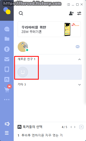 친구 추가 요청을 보내면 이렇게 '새로운 친구'와 '기타' 목록에 추가됩니다. 아시는 분은 아시겠지만 지금은 상대방이 친구 추가 요청을 받지 않은 상태입니다. (아래 사진과 비교해보세요.)