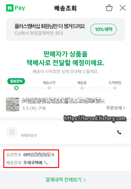 이 창을 통해 운송장 번호와 배송 현황을 확인할 수 있습니다.