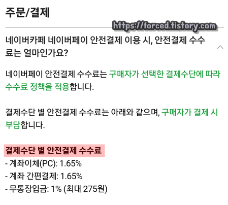 ※ 2022년 04월 21일 목요일부터 네이버페이 안전 거래 시 발생하는 수수료는 구매자가 부담하는 것으로 변경됨.