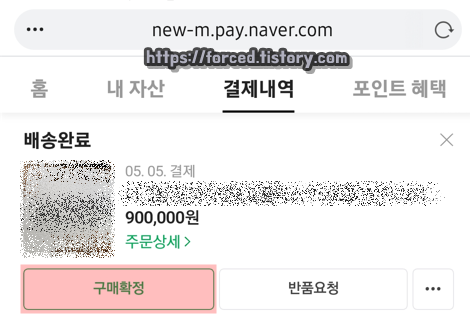 택배가 도착해 물건을 수령했다면, 물건 상태를 확인해줍니다. 물건에 이상이 없다면 '구매확정'을 눌러주면 됩니다.