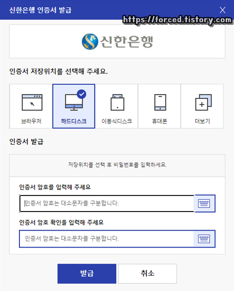 신한은행 범용 공인인증서 인터넷 발급 방법 끝.