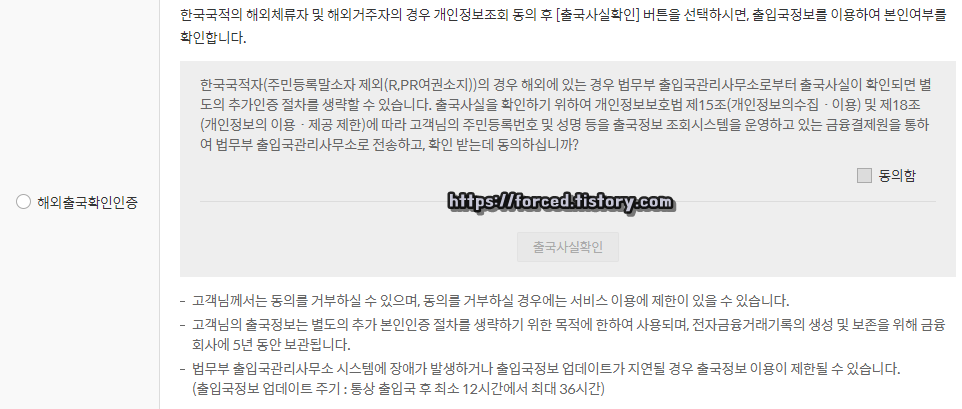 만약 현재 한국 국적의 해외 체류자 거나 해외 거주자인 경우에는 '해외출국확인인증'을 진행해주시길 바랍니다.