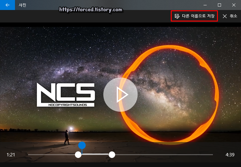 편집 범위 선택을 완료했다면, 이제 우측 상단에 보이는 '다른 이름으로 저장'을 눌러줍니다.