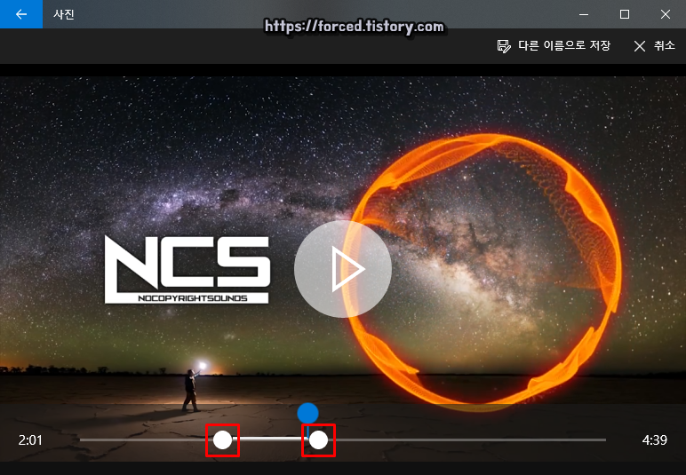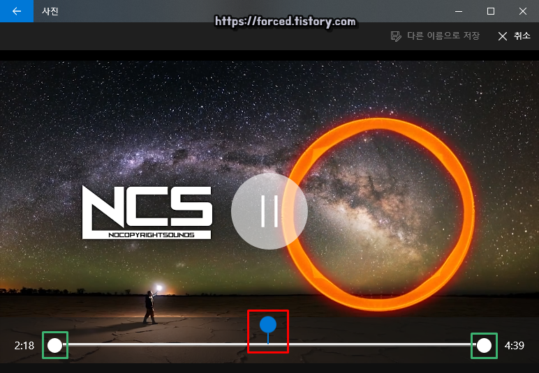 이렇게 '하얀색 바'를 움직여 잘라서 사용할 범위를 선택해줍니다.