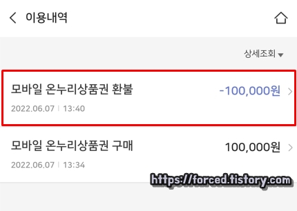 '이용내역'을 통해 환불 신청이 제대로 되었는지 확인해줍니다.