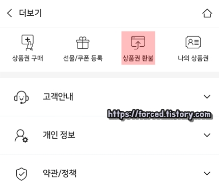 여기서 상단에 보이는 '상품권 환불'을 눌러줍니다.