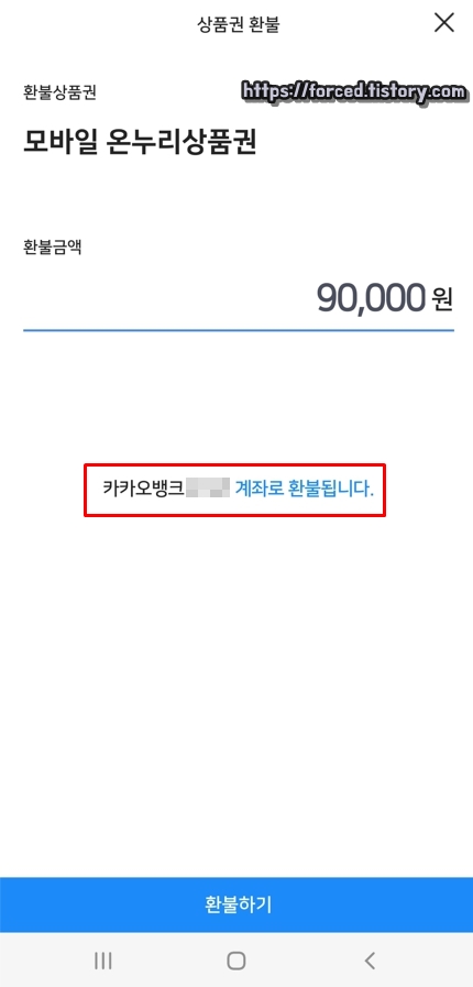 환불 계좌를 확인한 후, 아래에 보이는 '환불하기'를 눌러줍니다.