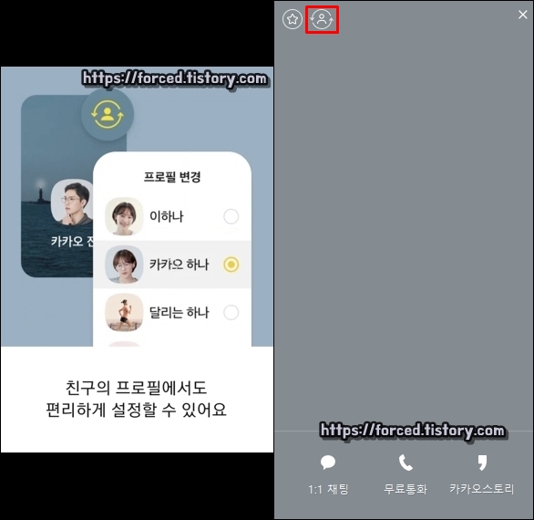 멀티프로필 보여줄 친구 설정은 친구 프로필을 통해서도 쉽게 가능합니다.