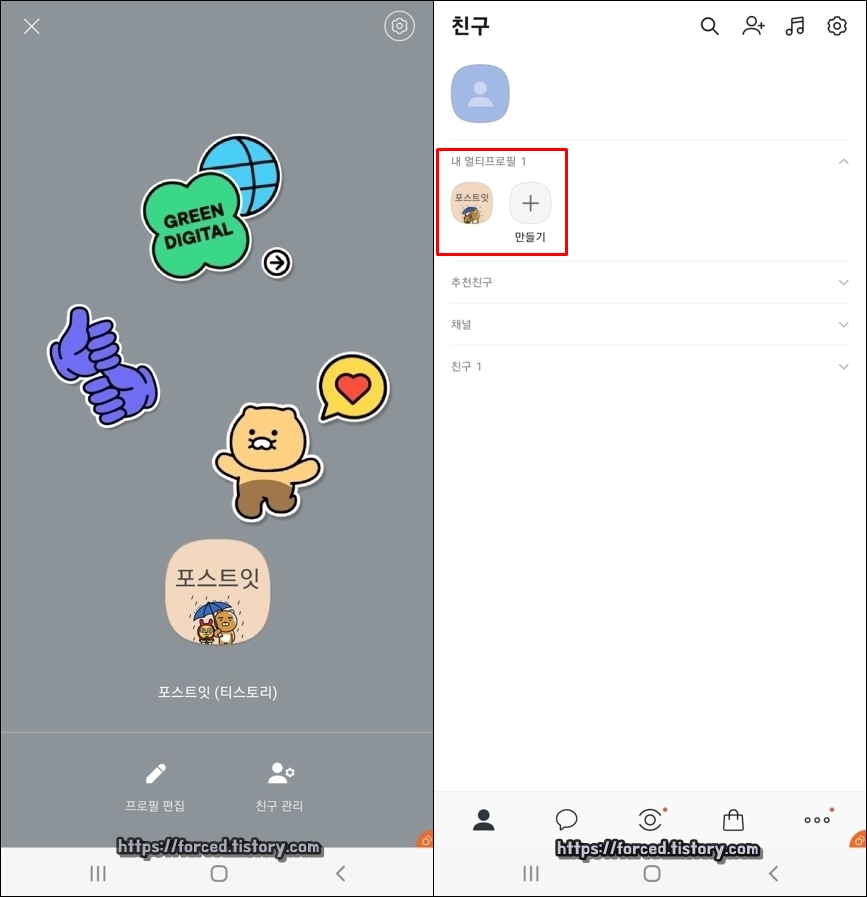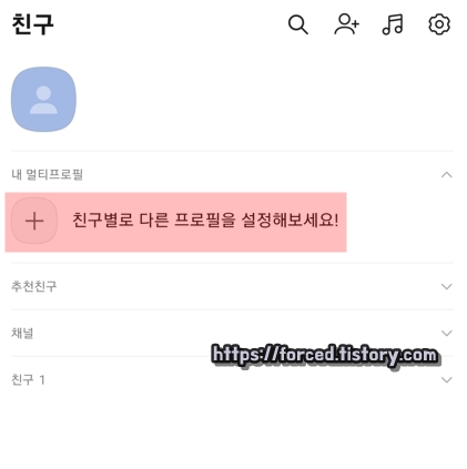 내 멀티프로필 아래에 보이는 '친구별로 다른 프로필을 설정해보세요!'를 눌러줍니다.