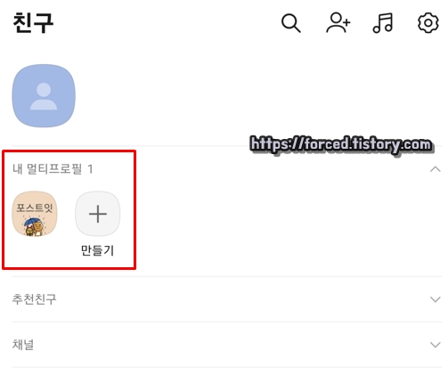 이전 단계에서 '완료'를 눌러주면 이렇게 멀티프로필 1개가 만들어집니다.