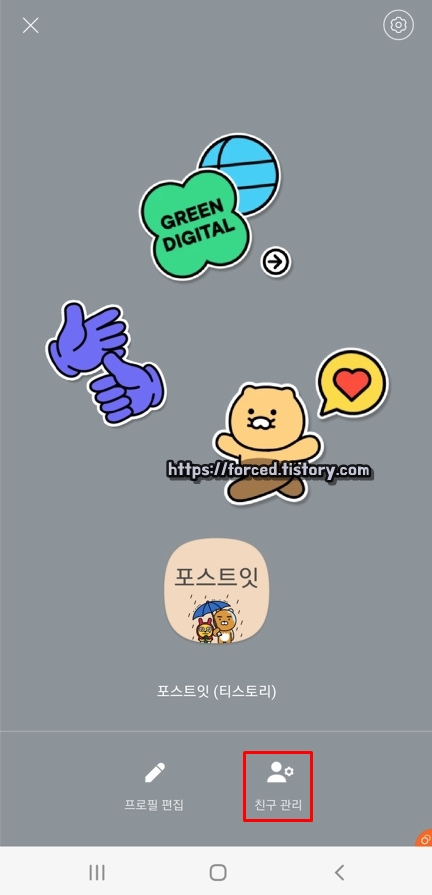 이제 멀티프로필을 보여주고 싶은 친구 설정을 위해 '친구 관리'를 눌러줍니다.