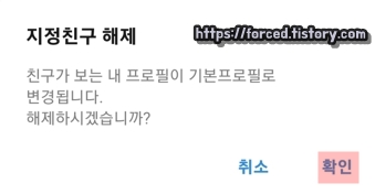 멀티프로필 설정 해제 이후, 멀티프로필 설정을 해제한 친구 입장에서 보는 모습입니다. 이제는 이렇게 무미건조한 기본 프로필만 보이고 있죠.
