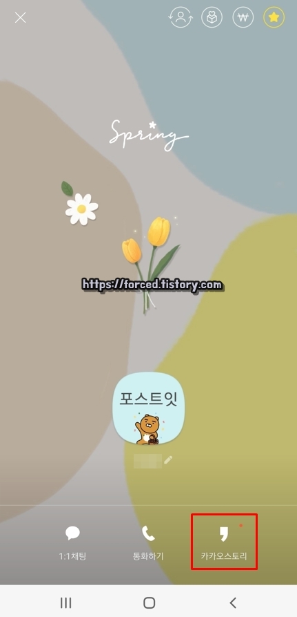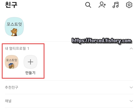 만약 나에게 멀티 프로필을 사용했다면, 우측에 보이는 것처럼 '카카오스토리 아이콘'이 보이지 않을 것입니다.