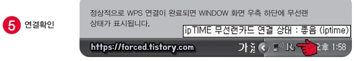 4. 무선랜카드의 WPS 버튼을 누른 후, 무선랜카드와 공유기 와이파이 연결이 제대로 되었는지 확인해줍니다.