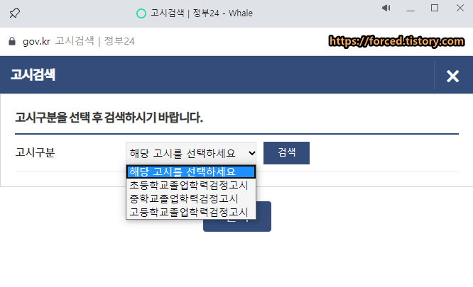 고시 구분(초.중.고등학교 졸업학력 검정고시)을 선택해줍니다.