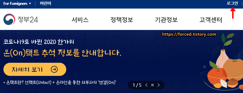 정부24 홈페이지에 접속한 후, 로그인을 해줍니다.