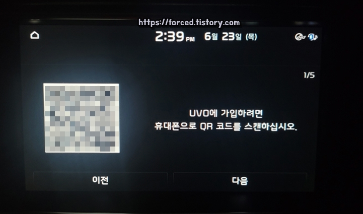 그러면 이렇게 차량 등록을 위한 QR 코드가 나오는데요. 우리는 아까 전에 기아커넥트 앱으로 차량 등록을 이미 해줬기 때문에 여기선 그냥 다음을 눌러 넘어가 줍니다.