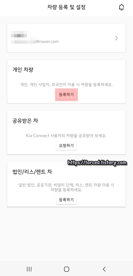 로그인 후, 개인 차량 아래에 보이는 '등록하기'를 눌러줍니다.