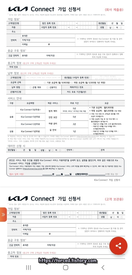 http://uvo.kia.com/information/service_join.html (기아 커넥트 가입 서류 자료실 링크)