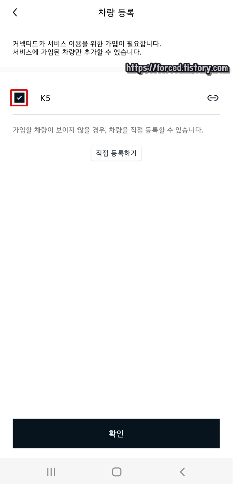등록할 차량을 체크한 후, 아래에 보이는 '확인'을 눌러줍니다.