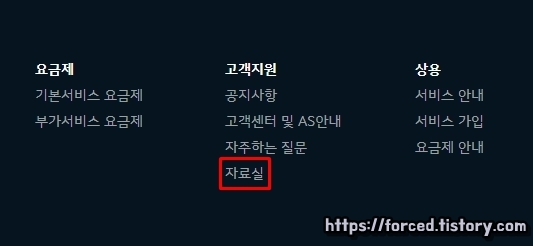 스크롤을 맨 아래로 내리면 보이는 '자료실'을 눌러줍니다.