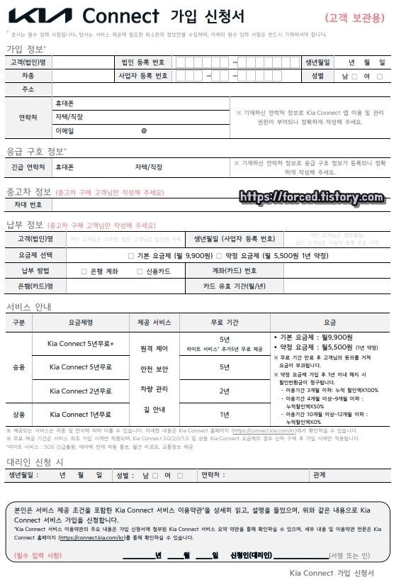※ 기아 커넥트 가입 신청서를 작성하기 위해선 프린트기가 필요합니다.