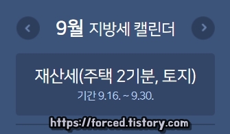 토지세가 포함된 재산세 2기분 납부 기간은 22년 09월 16일 금요일부터 09월 30일 금요일까지이다.