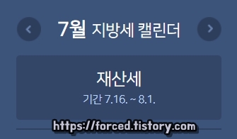 재산세 1기 납부 기간은 22년 07월 16일 토요일부터 08월 01일 월요일까지이다.