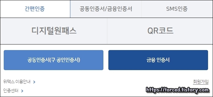 위택스 로그인 가능 수단은 간편인증(카카오 인증서, 네이버 인증서 등), 공동 인증서, 금융인증서, SMS 인증, 디지털원패스, QR코드입니다.
