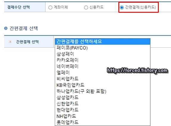 간편결제같은 경우에는 페이코, 삼성 페이, 네이버 페이, 카카오페이 등 여러 가지 결제 수단을 이용할 수 있습니다.