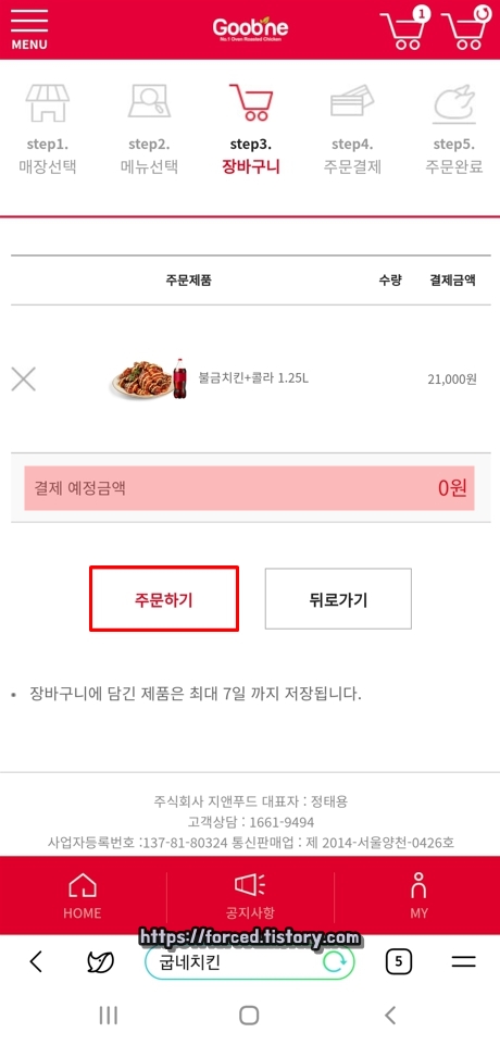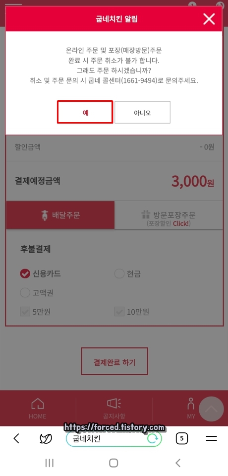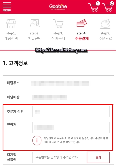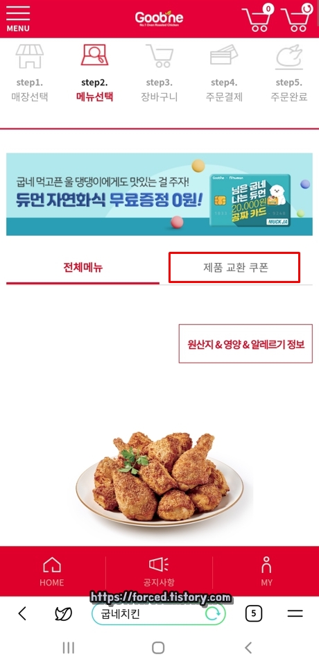 굽네치킨 기프티콘 사용법 (온라인 주문)