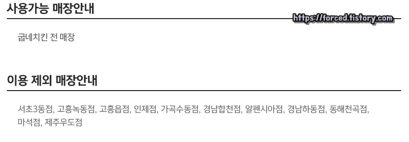 굽네치킨 기프티콘은 기본적으로 굽네치킨 전 매장에서 사용 가능합니다.
