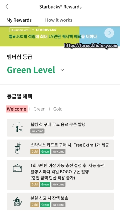 스타벅스에는 웰컴 레벨, 그린 레벨, 골드 레벨 이렇게 3가지 회원 등급이 있는데요. 스타벅스 회원 등급이 그린 레벨 이상이 되면 생일 쿠폰을 받을 수 있습니다.