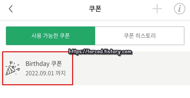 생일 쿠폰(Birthday 쿠폰)은 쿠폰함에 잘 들어와 있네요. (생일 14일 전 자동 지급)