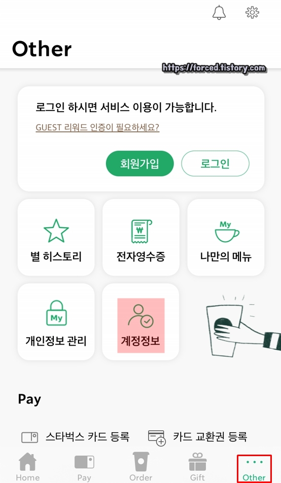 2020.09.08 - [# 생활정보 (PC, 모바일)] - 스타벅스 사이렌 오더 사용방법 (기프티콘)