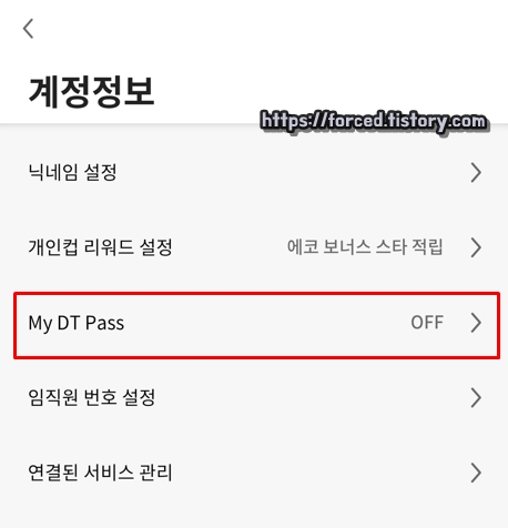 My DT Pass 결제 사용 설정을 ON 해줍니다.