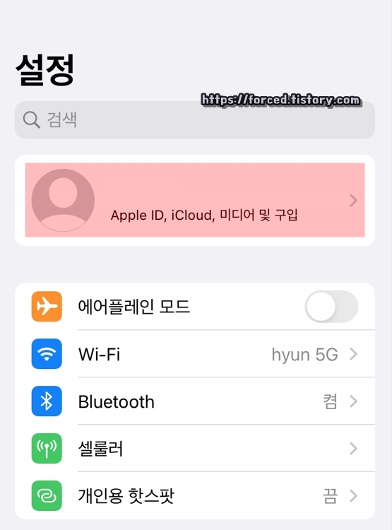 설정 창으로 이동한 후, 상단에 보이는 프로필을 눌러줍니다.