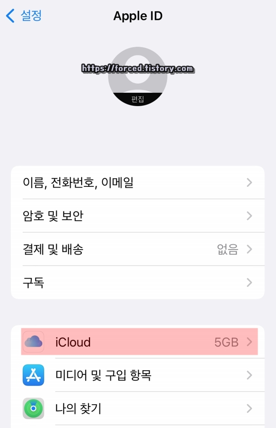 여기서 iCloud를 눌러줍니다.