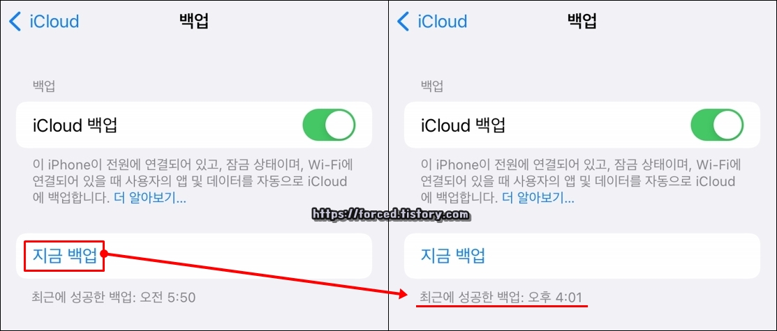 'iCloud 백업'을 눌러줍니다.