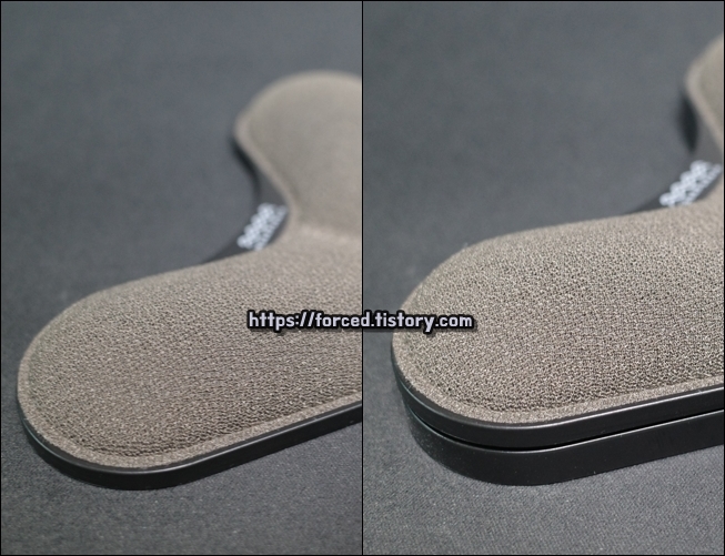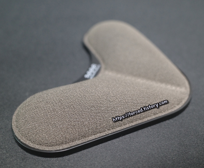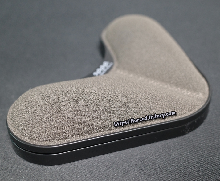 해당 제품은 피부에 직접 닿는 쿠션 부분은 천 소재를 사용했으며, 안쪽에는 오래 사용해도 변형이 적은 메모리폼이 사용되었다. 그리고 손목 중앙이 받는 압력을 분산하기 위해 가운데 부분을 협곡형으로 디자인하였다.