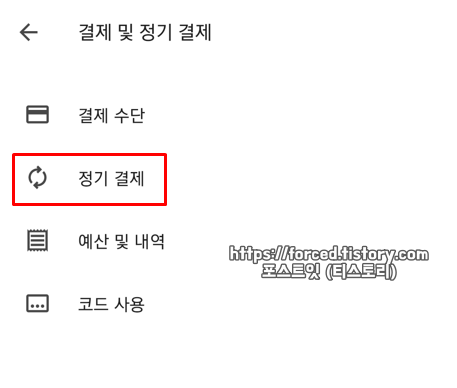 여기서 "정기 결제"를 눌러줍니다.