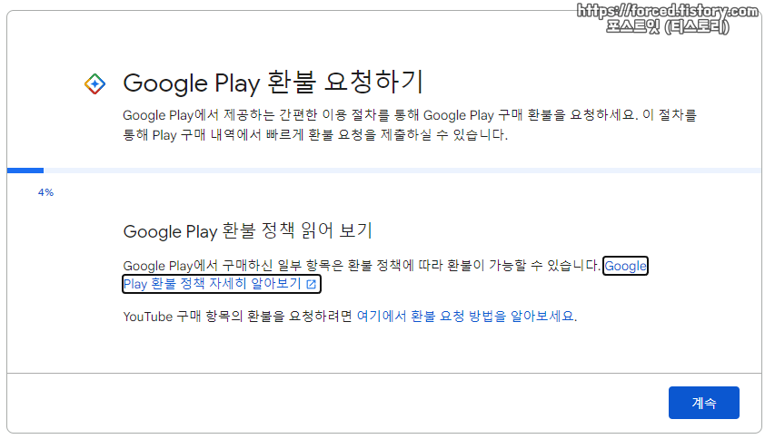 일단 이모티콘 플러스 구매 후 48시간 이내라면, 구글 플레이 스토어 환불 신청 웹사이트를 통해 환불 신청할 수 있습니다. 위 사진에 보이는 구글 플레이 환불 요청하기(PC 웹사이트)를 통해 말이죠. 환불 신청 이후에는 심사 후 순차적으로 처리됩니다.